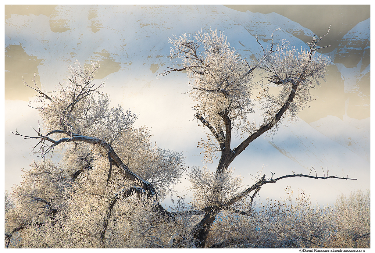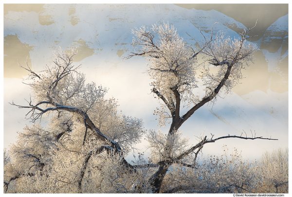 Freezing Fog and Frost Covered Cottonwoods, Caineville, Utah
